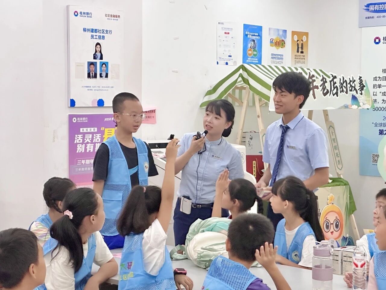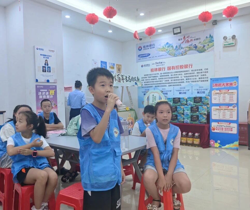 “当客户进入银行时,我们要主动起身或举手示意,面带微笑的问候‘您好,欢迎光临’,传递热情友好的第一印象,接下来,请几位小朋友上台演示一下。”跟着银行的小吴姐姐,我们也顺利的学会了如何把柜员服务做好。