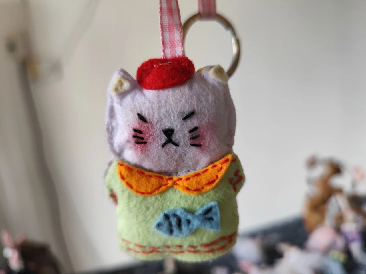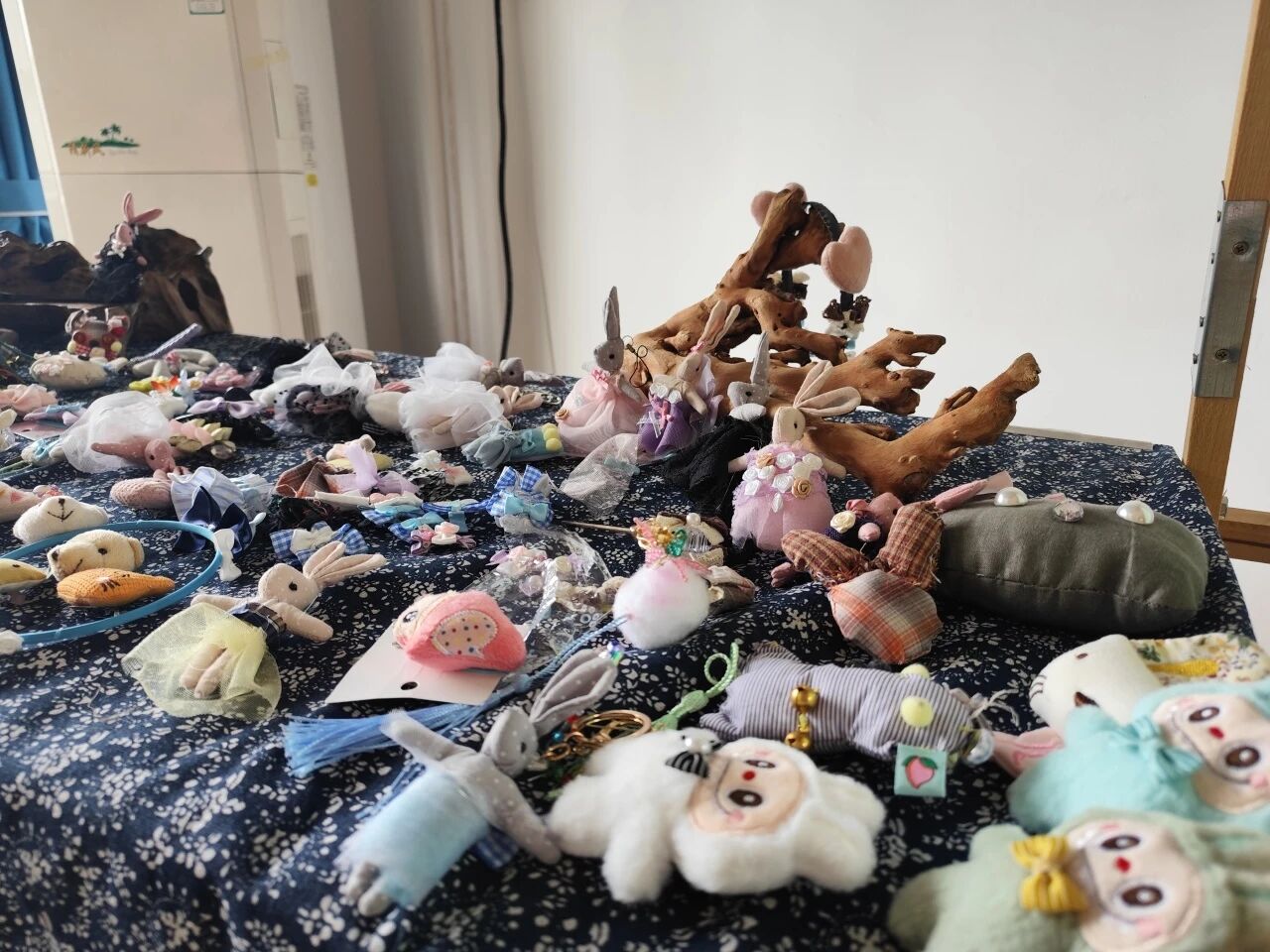 看着展台上一件件手作作品,我心里满是感动。从七月公益班开课那天起,我见证了大家从拿起工具时的生疏,到如今能独立完成作品的从容——那些造型各异却满是诚意的钥匙扣、针脚里藏着巧思的布偶、用纸造就的温暖小窝,每一件都在诉说着“手作”与“公益”的相遇有多珍贵。
