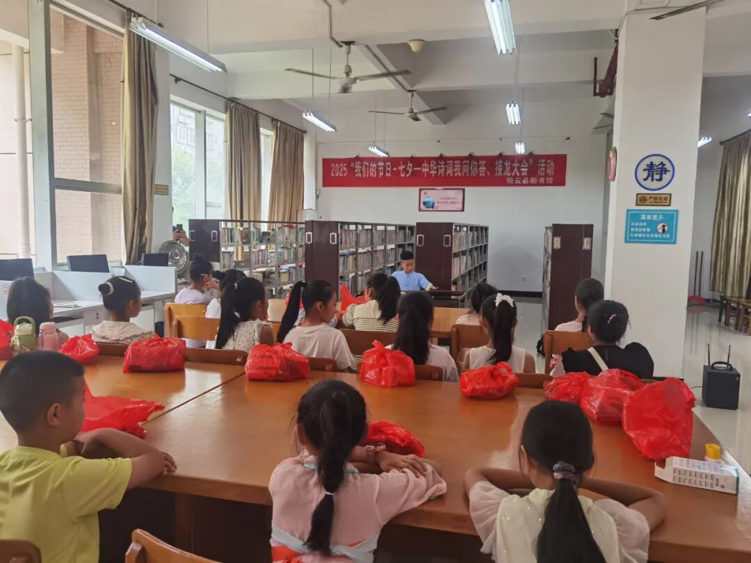 为弘扬中华优秀传统文化,融安县图书馆于2025年8月29日成功举办“我们的节日·七夕——中华诗词我问你答接龙大会”活动。活动以诗词为媒,传承七夕文化,增强公共文化服务影响力,吸引了众多亲子家庭与学生读者踊跃参与。