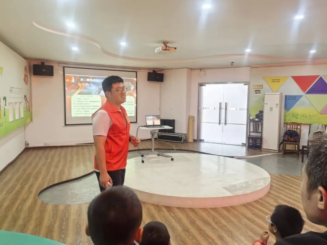 活动伊始,曹洋老师以《西游记》中二郎真君“小圣降大圣”与“擒获九头虫”两场高光战绩为核心导入,通过生动的情节讲述与角色分析,凸显二郎真君顶尖战力,同时剖析他与孙悟空之间英雄相惜的知己情谊,迅速吸引了孩子们的注意力,激发了他们对神话人物的探究兴趣。