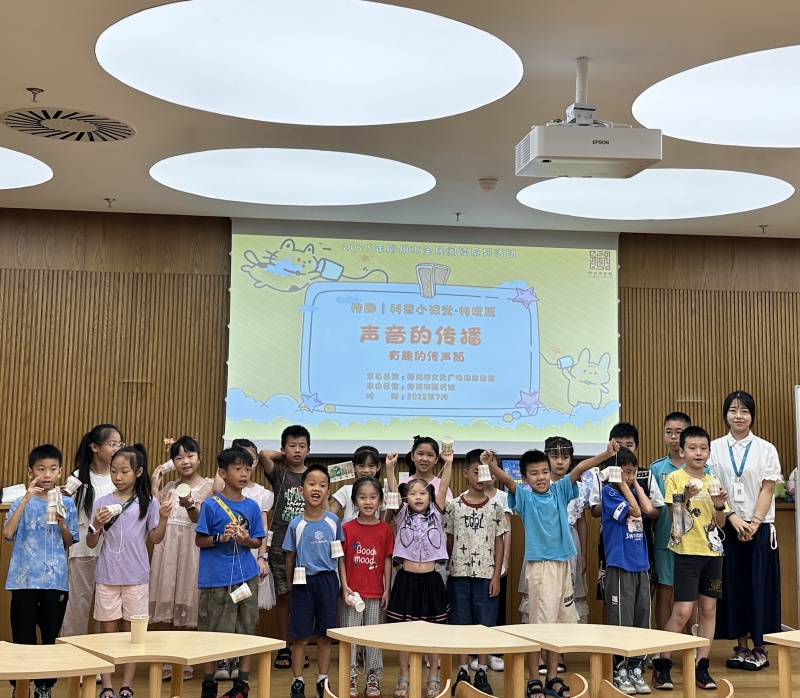 01 本期荐读 书籍简介 《趣味物理实验园.奇妙的声音》 著者:英国尤斯伯恩出版公司; 谢沐 译 出版社:接力出版社 馆藏地点:柳东馆2F自科区 索书号:O4-49/4464 本书适合6-10岁儿童阅读。通过它,孩子们可以认识声音的三要素——音色、音调、响度;亲手做好玩的小实验,亲眼看到声音是如何产生的;了解声音怎样在空气、固体和液体中传播;还能发现声音在生活中的神奇应用!书中设有超过60张翻页,让孩子在互动中发现奥秘。快来一起探索声音的奇妙世界,边玩边学吧~ 为什么推荐这本书? 1 从儿童的视角出发,巧妙运用日常生活中的物理现象,向孩子们介绍基础物理知识,并延伸至前沿科学与应用。 2 书中内容不仅涵盖物理,还融合了生物、地理等多学科知识,打破学科边界,多维度拓展科学思维。 3 鼓励孩子们自主探索,书中提供详实的实验方案,引导孩子们动手实践,让科学学习生动有趣。 全书设计充满创意,形式新颖,以新奇有趣的方式激发孩子的科学兴趣。 能从书中学到什么? 问:声音如何产生? 答:物体振动(如声带、琴弦)引发周围介质分子振动,形成疏密交替的声波。 问:声音如何传播? 答:声音的传播需要介质,如空气、水和固体(真空不能传声)。 问:声音如何被听到? 答:声波到达耳朵,经耳蜗听觉细胞转为神经信号,由听神经传至大脑,大脑解码后形成听觉。 问:声音如何反射、折射与衍射? 答:反射是声波遇硬表面反弹(如回声);折射是声波在不同介质中因速度变化而改变方向;衍射是声波绕过障碍物边缘继续传播。 问:声音的应用有什么? 答:医疗上用超声波诊断、治疗等;通信中转化为电信号传输存储;娱乐领域用于音乐创作演奏;动物借声音沟通求偶;还用于定位、识别、声学测量等。 02 延伸阅读 《声音的魔力》 著者:(英)阿诺德 出版社:北京少年儿童出版社 馆藏地点:柳东馆2F自科区 索书号:O42-49 为什么一位有教养的歌唱家会因为听到一个音符就变成行为粗鲁的野蛮人?什么样的声波,能让你的肠胃跟着 “跳舞”?来认识声波如何震动你的鼓膜,弄清麦克风怎样把声音变成电脉冲。这本书大声地告诉你关于声音的全部知识,为你揭示声音魔境中令人匪夷所思的真相。 《这就是物理:声音》 著者:(美)约瑟夫·米森 ; (美)萨缪·希提 绘 出版社:湖南少年儿童出版社 馆藏地点:柳东馆2F自科区 索书号:O4-49/9040 想知道 “什么是声音?它是如何运作的?” 这本书会给你答案! 跟随卡通小主角“声音”蝙蝠洞、耳道里探险,甚至飞往遥远外太空,去探寻声音的秘密!明亮多彩的漫画里藏着各种知识:声音是如何传递和吸收的、我们怎样听到声音,还有回声、声波等超有趣的声学小常识,等着孩子们发现。 《追不上的物理书.1,声音:能在月亮上开演唱会吗》 著者:(韩)图书出版城佑执笔委会 出版社:人民邮电出版社 馆藏地点:柳东馆2F自科区 索书号:O4-49 这本书汇集了大量生活中的常见现象和趣味实验,系统讲解了声音的产生原理、振动与波动特性、耳朵的听觉机制、动物的发声与听声方式、声音的基本特性、噪声的影响、乐器的发声奥秘等知识。它非常适合小学中高年级学生及初中生阅读。 03 活动回顾 “‘科普小课堂’书目推荐”是柳州市图书馆少儿科普品牌“科普小课堂”系列活动下创立的独立科普书目推荐品牌。 我们定期从浩瀚书海中精选优质少儿科普读物,特别关注那些能点燃科学好奇心、解释生活现象、启发动手实践、兼具趣味性与知识性的优秀作品,并会根据物理、化学、生物等不同学科内容,推荐针对性的图书。我们希望通过专业、贴心的推荐,为孩子们打开一扇扇探索科学世界的窗口,让求知之旅充满乐趣!
