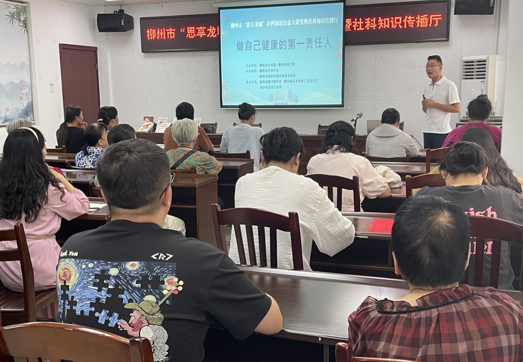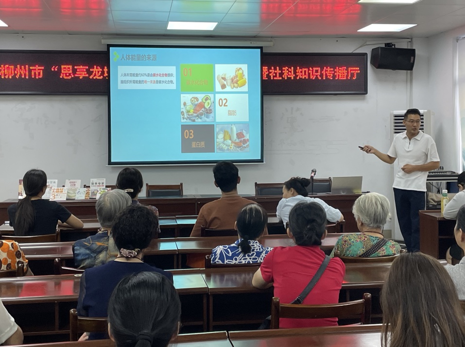 本次讲座是柳州市社科联和柳州市图书馆联合主办的“思享龙城”社科知识公益大讲堂暨社科知识传播厅系列活动之一,邀请了柳州市营养学会会长、高级公共营养师、高级健康管理师杜勇为大家普及营养健康方面的知识,近50名听众参加了此次讲座。