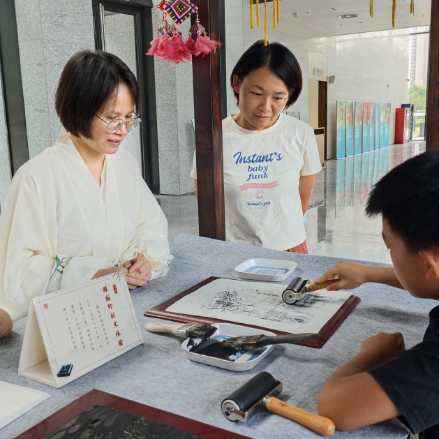 活动现场设有雕版印刷技艺体验,配合柳州典籍展陈的专业讲解,使读者在沉浸式体验中,感受千百年来柳州先贤的智慧结晶与绵延不绝的城市文脉。透过一页页典籍、一件件展品,读者得以亲手触摸柳州独特的文化风景。