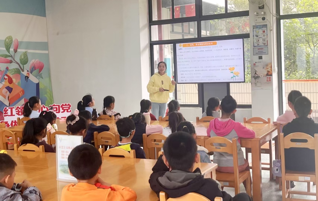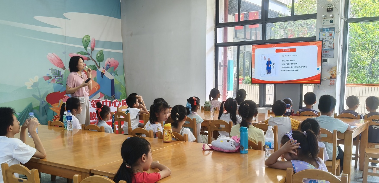 活动核心环节中,孩子们围坐在一起,共同翻阅绘本《童年颂》,在细腻的画面与真挚的文字中体会家国情怀;随后,悠扬深情的《童年颂》朗诵声响起,孩子们静静聆听,爱国情感在心中悄然萌芽。馆员老师还同步推介了“爱国主义教育主题系列图书”,引导孩子们从书中汲取红色力量。
