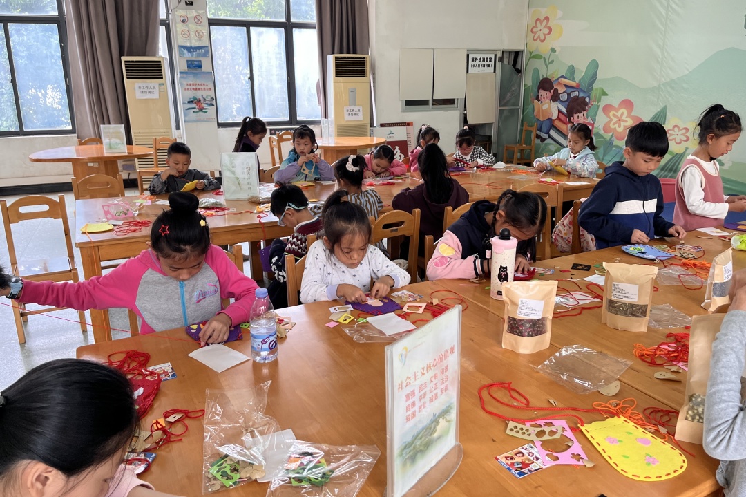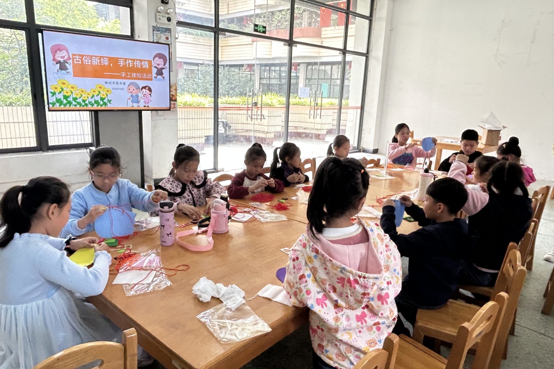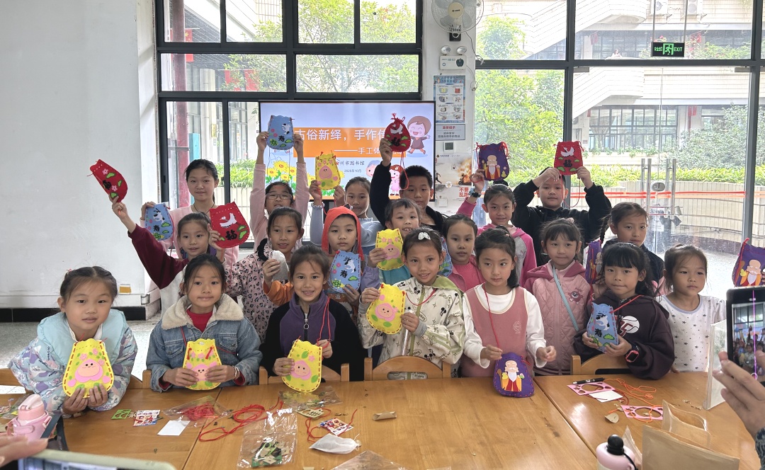 在手工制作环节,孩子们拿起彩绳、布料与装饰配件,认真制作寓意吉祥的福袋,一针一线缝制的是祝福,一笔一画书写的是孝心。小小的福袋不仅承载着孩子们对长辈的爱,更让传统节俗在新时代焕发出鲜活生命力。