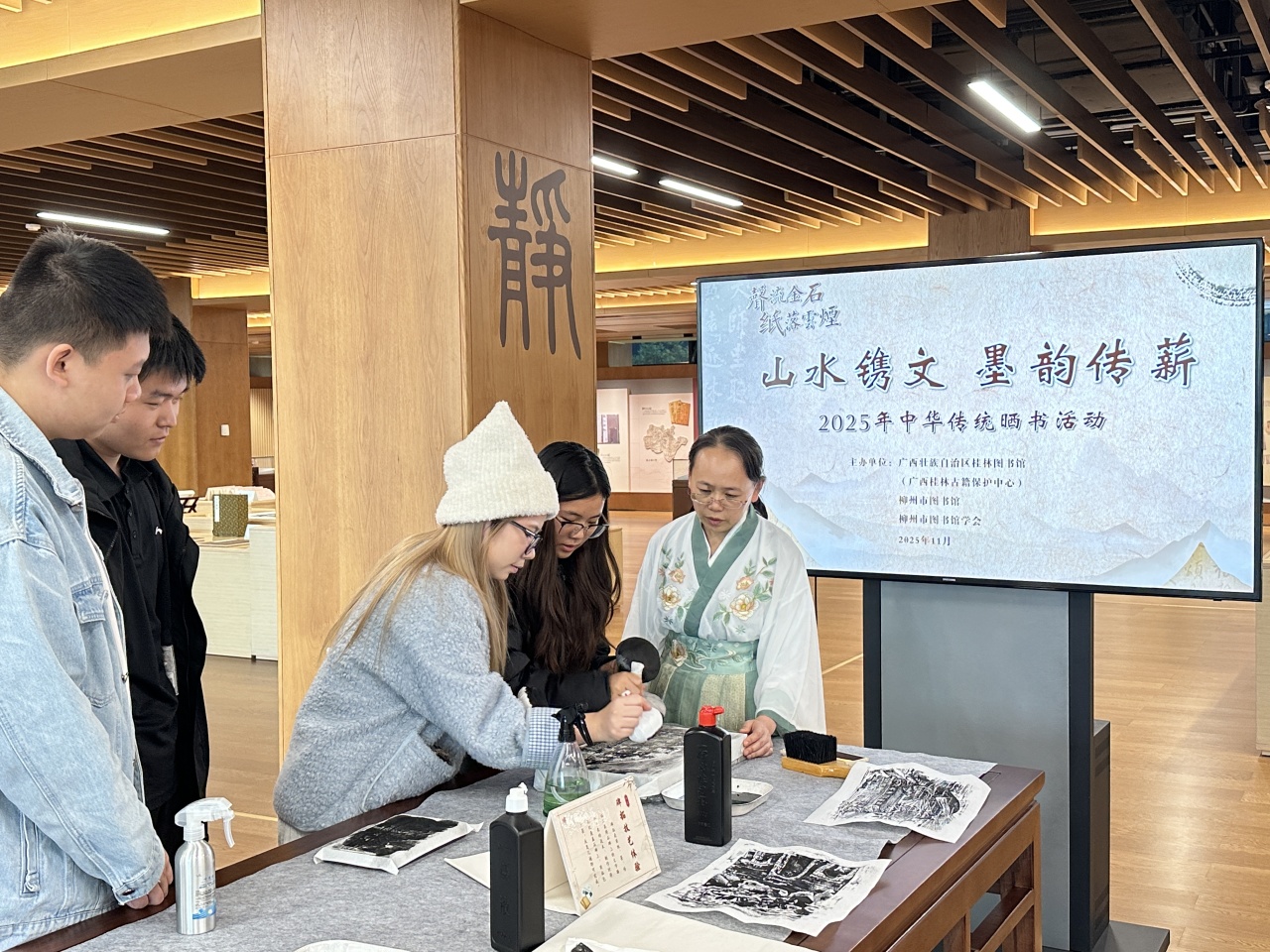 活动当天,柳州典籍博物馆还开展“寻味柳州”主题书展等柳州典籍奇妙日和大家雅集系列活动,通过雕版印刷、碑刻传拓等传统技艺体验和互动分享,让青年学子在感受传统文化魅力的同时,也加深了对柳州这座城市的了解与热爱。