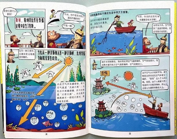 书中内容深度结合中国历史与经典典籍——通过皮影戏解析光的直线传播,引用《墨子》《淮南子》等古籍中的光学记载,还围绕海市蜃楼、彩虹形成等自然现象展开科普。