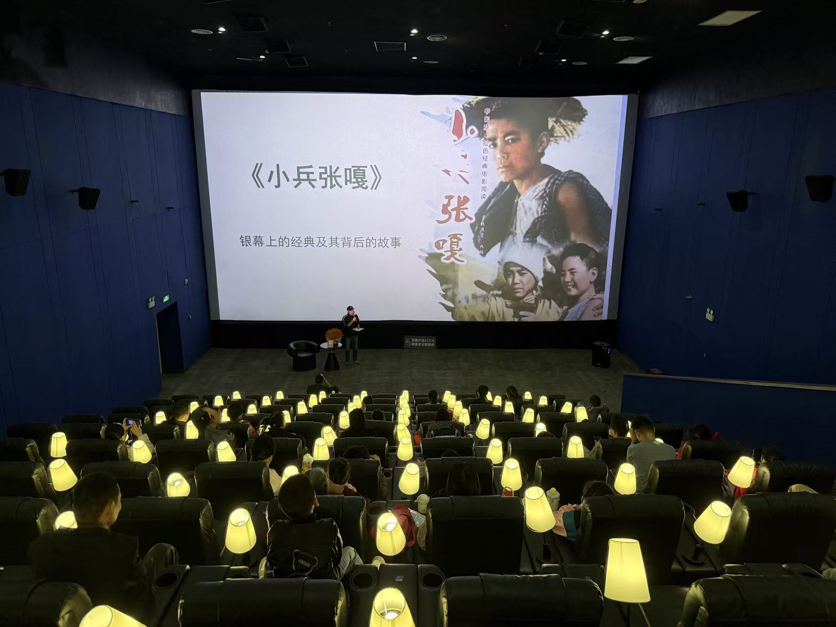 11 月 22 日,柳州市图书馆与柳州市影视艺术家协会再度携手,在“SKY天空影城”延续“龙城笔阵・书影同行”系列活动,以影像为桥、文字为引,邀读者共赴一场“重逢白洋淀的英雄少年”的跨越时空之约。活动现场,1963年版《小兵张嘎》的经典片段唤起一代人的集体记忆,让每一位参与者跨越岁月阻隔,真切感受红色经典中滚烫的精神力量,在光影与文字的交织中,重温烽火岁月里的赤诚与担当。
