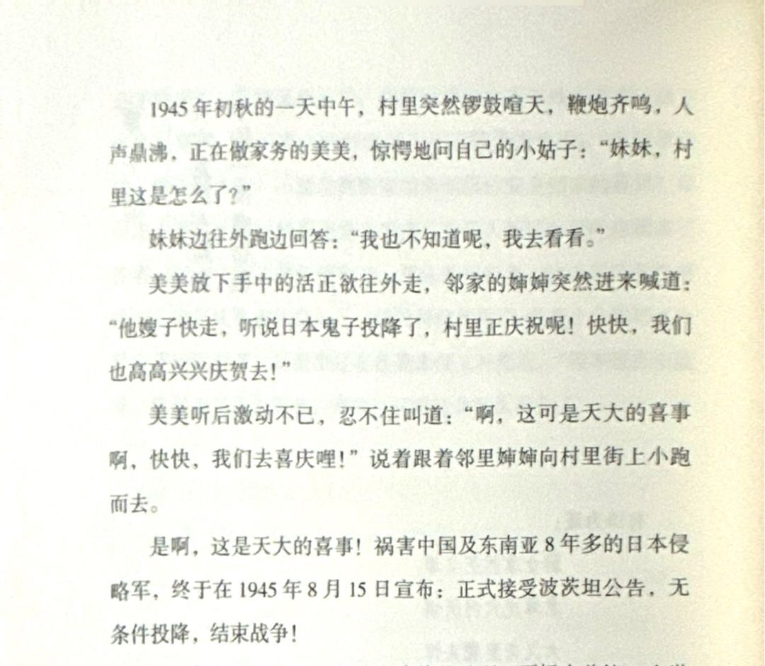 书中的母亲美美,生于乱世,历经战火纷飞与岁月颠簸,却以“敬天,爱人,忘我,利他”的品格,在苦难中坚守善良与勇敢。偶遇的“神秘女客人”点亮她的信仰,让她以柔弱之躯传递情报、守护乡邻,用一生诠释着平凡中的不凡。鲁南乡村的烟火气与百年历史的风云变幻交织,煎饼的香气、邻里的温情与革命的星火相映成趣。