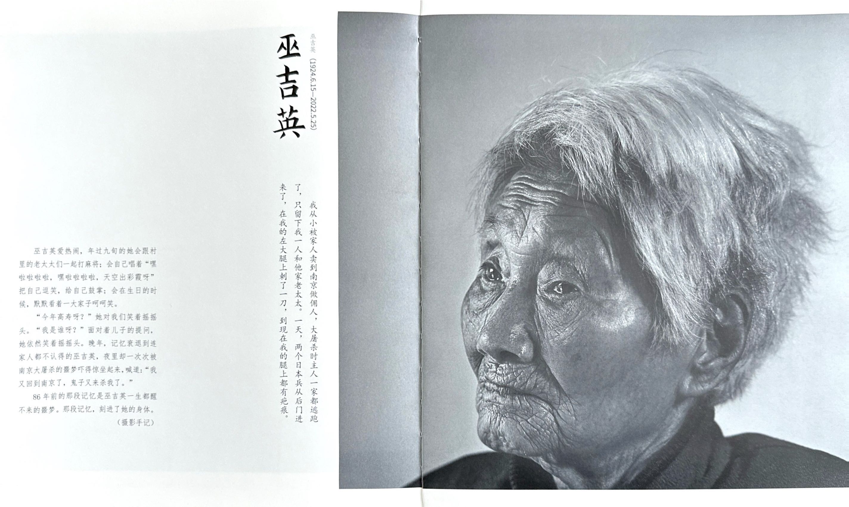 这本书以“南京大屠杀幸存者艺术肖像摄影展”为蓝本,收录了80位幸存者的珍贵肖像与口述实录。摄影家速加耗时5年,在自然光影下捕捉老人们最真实的神态,只为定格不可复制的历史印记。
