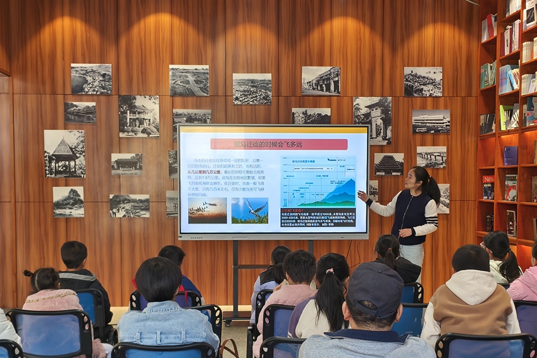 守护候鸟迁徙航线,是对生命奇迹的尊重,更是维护生物多样性关键环节的具体实践。一部“候鸟迁徙与生命守护”为核心的影像作品讲述了迁徙路上“临时家庭”的冒险故事,巧妙展现了候鸟南迁的艰辛与生命韧性。在“守护生命航线”互动问答环节中,馆员老师通过图片展示、案例分享,解读候鸟迁徙的科学奥秘,介绍湿地保护、生物多样性守护的重要性,以及我国在候鸟保护方面的实践成果,现场读者踊跃分享保护建议。