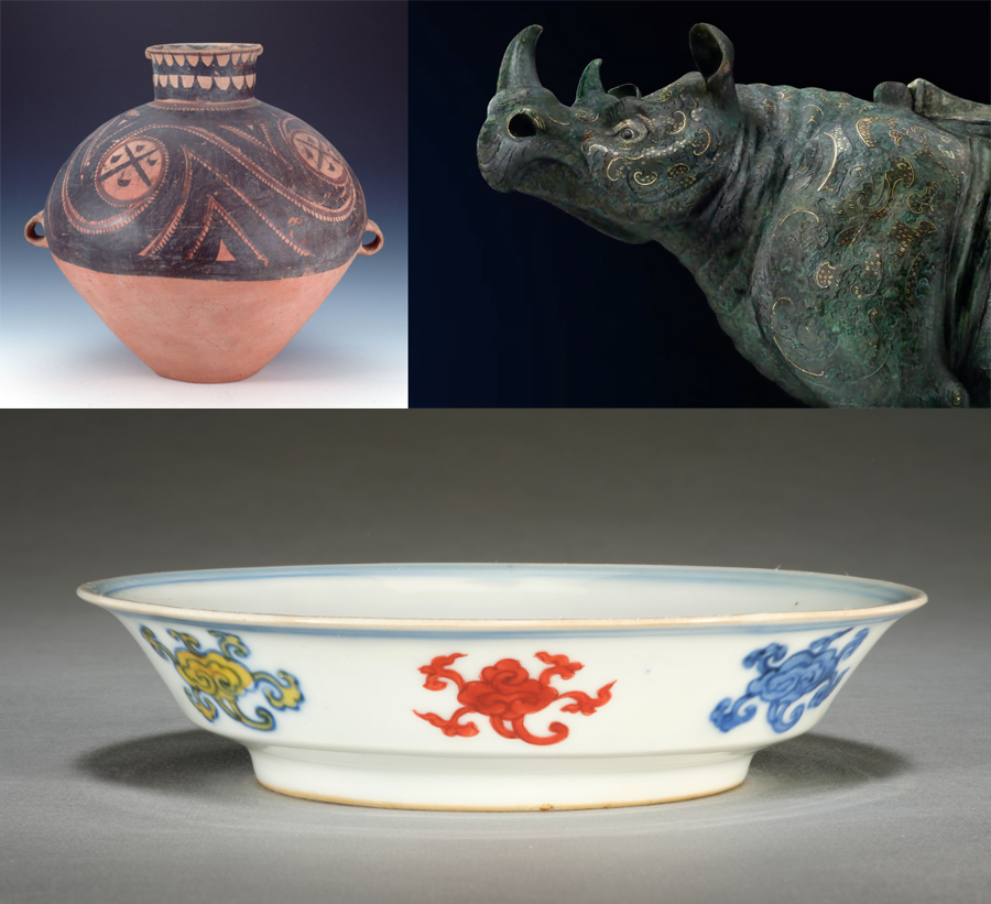 云纹的雏形起源于新石器时代马家窑文化彩陶的涡纹,其用简单流畅的几何线条展现出质朴生动的美感。秦汉时期,发展出舒展流动的云气纹。到了明清,随着“如意云”“品字云”“四合云”等经典变体广为流传,云纹逐渐定型为吉祥图案的核心元素,象征吉祥高升、如意安康。