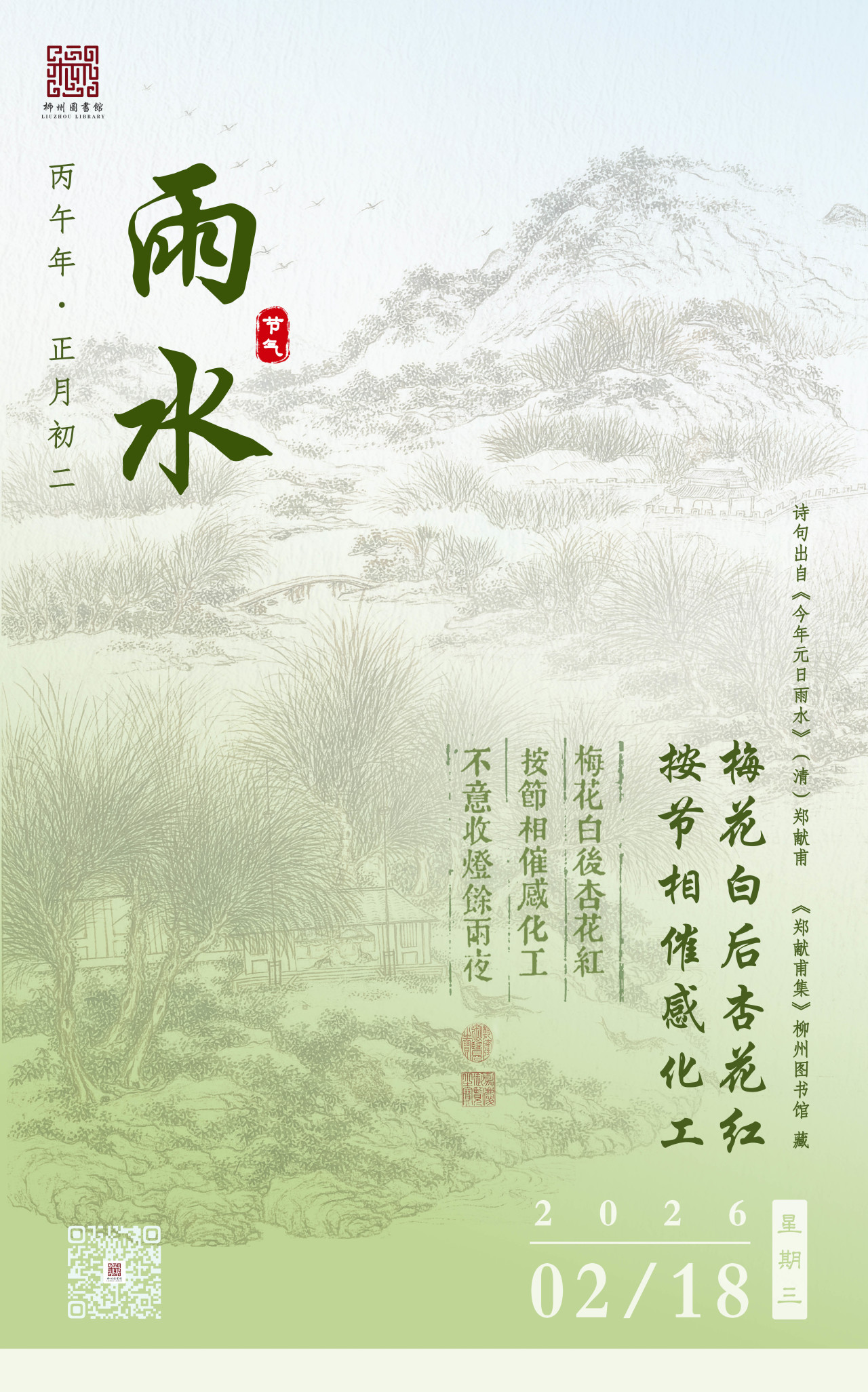 清同治十年(1871),广西大儒郑献甫(1801—1872,别字小谷,广西象州人,壮族著名学者、诗人、经学家、教育家,被誉为“粤西一代真才子”)再访柳州。这位青年时求学于柳江书院、晚年多次到访柳州的清代诗人,在乍暖还寒的早春时节,挥笔写诗留下“百花尚未开”的遗憾,寄托“佳气正茏葱”的期待。百余年后,让我们循着这位壮族诗翁描绘的“春雨花信图”,感受龙城在时光长河中流转的节气韵味。