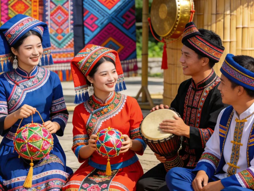 民俗狂欢更是热闹非凡。竹竿舞节奏欢快,游人携手共舞,笑声此起彼伏;五彩绣球凌空抛起,承载着吉祥祝福;打铜鼓、跳长鼓舞,各项特色活动轮番上演,各民族文化交融碰撞,绘就民族团结的热闹画卷。