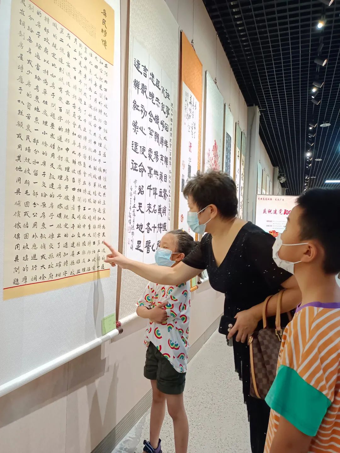 市社会科学界联合会党组书记、主席张骏驰致辞 6月26日上午,“翰墨书香百年情 传承文明耀龙城——庆祝建党100周年书画巡展”活动在柳州市图书馆阅甫轻艺术生活空间开幕,柳州市社会科学界联合会主席张骏驰出席活动并致辞,参加活动人数近80人。 活动现场 活动得到了社会各界的广泛响应和大力支持,征集到130幅书画,从中遴选优秀作品100幅。参展者的年龄有入党近70年的老党员,99岁高龄诗人,11岁的小学生,他们以饱满的爱国热情赋诗撰联、作画,用丹青歌盛世,用翰墨颂党恩。 赏析书画 书画巡展分五大板块(1)欢庆百年,永记初心(2)改革创新,共铸辉煌(3)历史变迁 柳州新颜(4)家国情怀,传承家风(5)肩负使命,迈步新程。作品从不同角度歌颂党的光辉历程,展示柳州党史、本土的英雄人物事迹,传承红色基因,弘扬传统文化,献礼建党百年华诞。 柳州市图书馆作为践行社会主义核心价值观的意识阵地,发挥了社会教育职能,通过书画巡展回顾党的百年历程,展示柳州现代风采,表达柳州人民在党的领导下,为追求幸福生活不懈奋斗的精神,抒发热爱党、热爱祖国、热爱家乡的情怀。此次展览持续至7月5日,后期还将陆续进社区巡展。 书画巡展现场