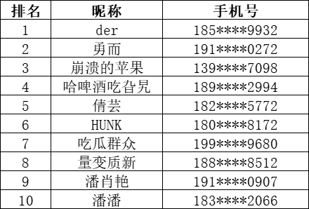 图书馆将对总排行榜前10名进行奖励,获奖名单如下:
